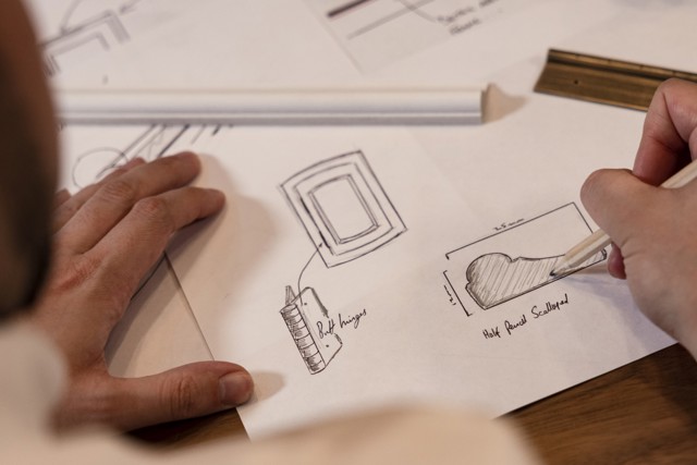 Your 1909 kitchen begins here at our County Durham headquarters where our designers come up with our concepts. From the detailed beading surrounding our doors, to the wine rack or vegetable drawers within a tailored pantry, and even our handle designs – it’s all carefully drawn in-house, promising authenticity over every inch of your furniture.