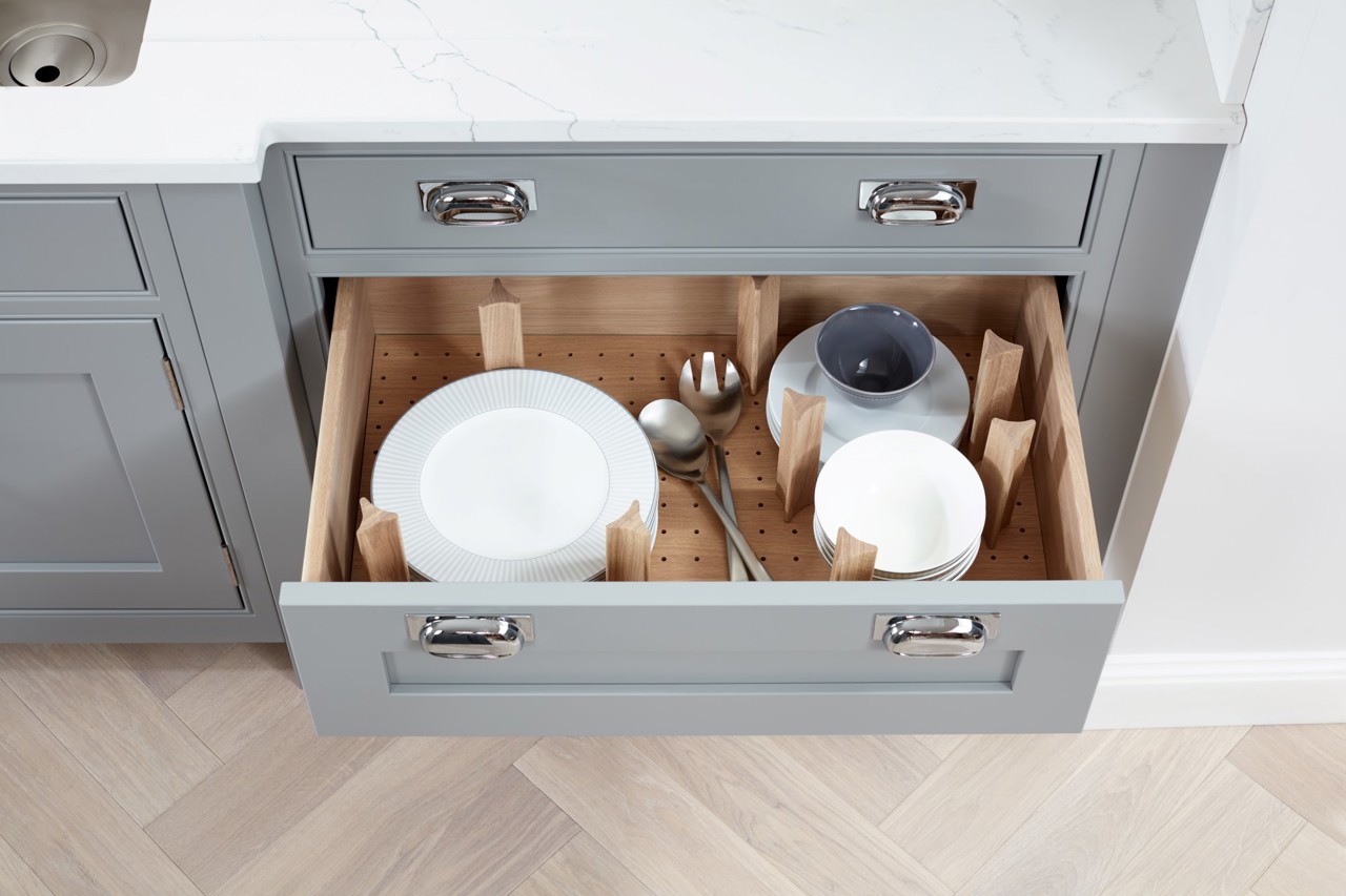 Put an end to aimless rummaging with our wide range of superb drawer organisation solutions. From cutlery trays and knife blocks, to food storage and plate holders, our cleverly designed and expertly crafted drawer organisation inserts will ensure you to make the most of your storage space.