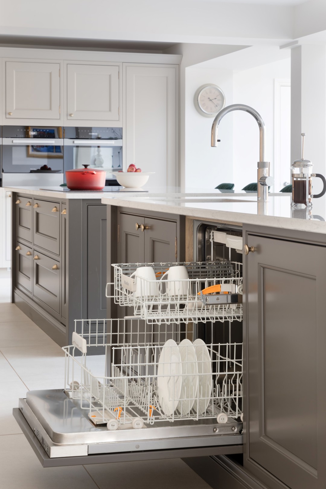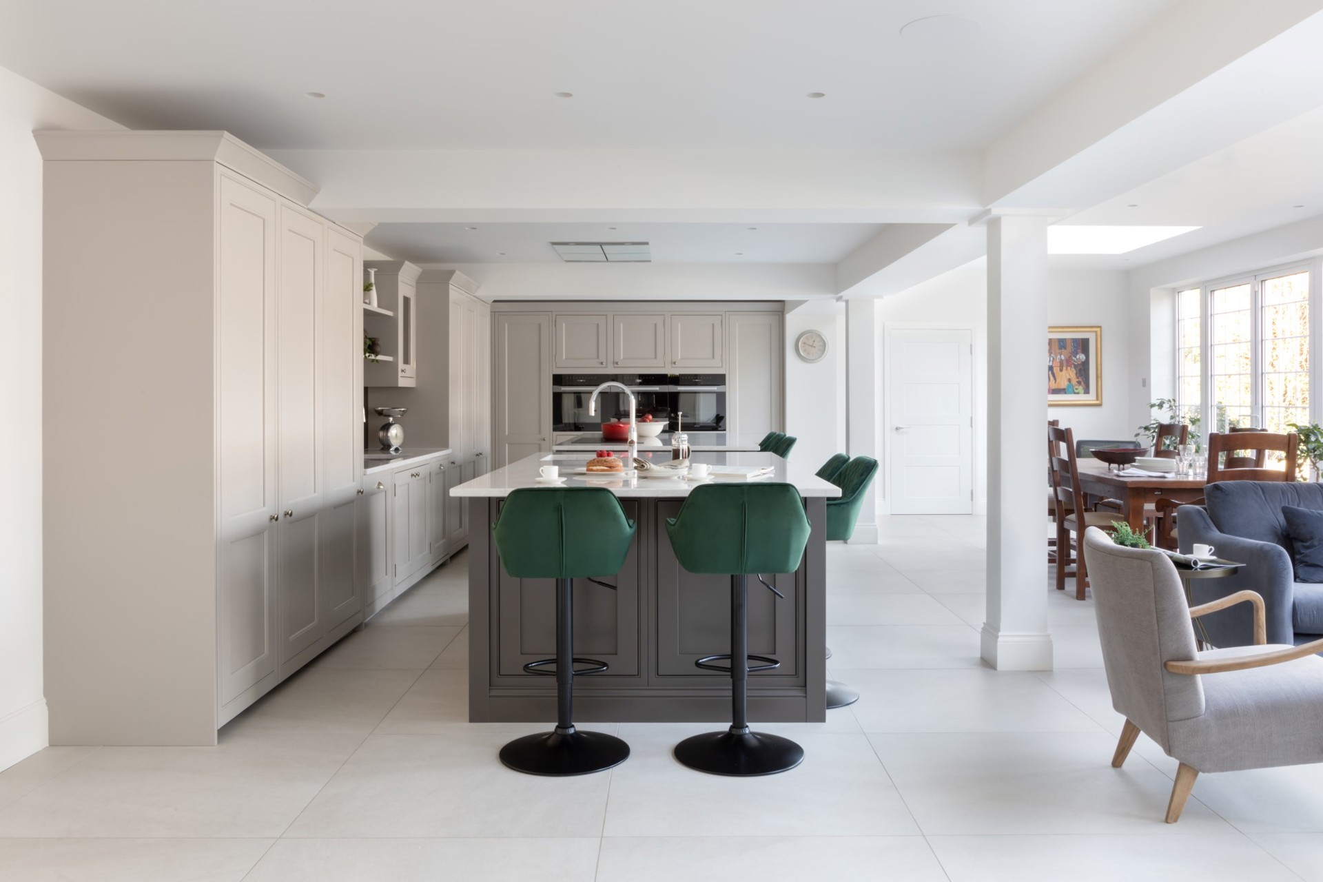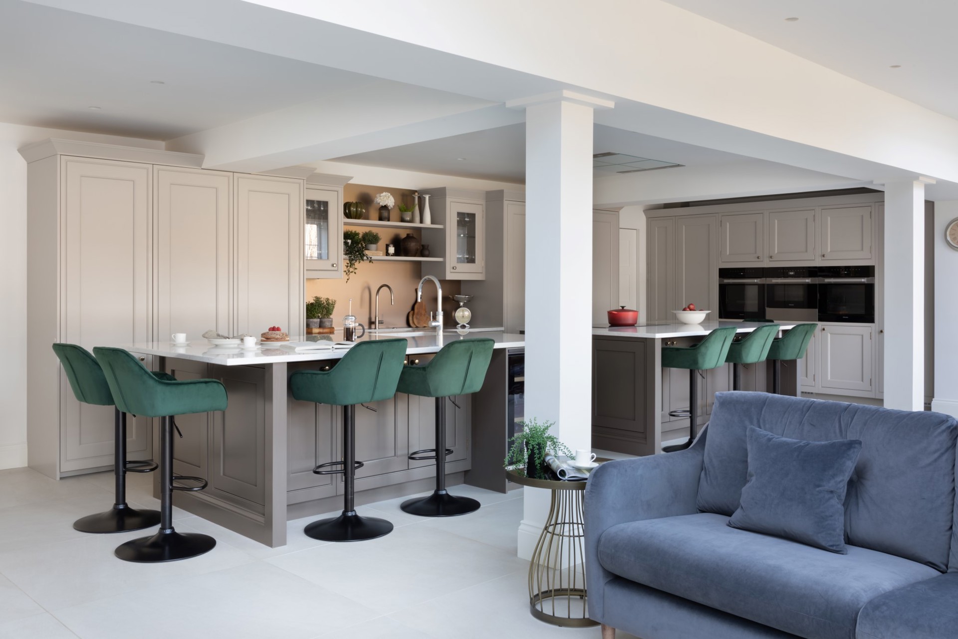 A show-stopping, large double island layout is balanced with a calming, neutral palette of Stone and Truffle in this impressive kitchen in Surrey, designed by one of our independent premium partners, Life Kitchens, in conjunction with Rebecca from B Styled Interiors. If you're blessed with a large, open-plan footprint, a double island is an elegant yet practical way to truly maximise the space, creating separate zones for cooking, food preparation and dining, an abundance of storage, and allowing a walk-way between the islands for moving effortlessly around the kitchen.