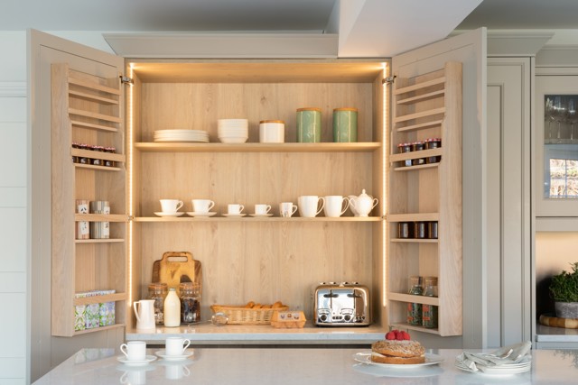 It can be your breakfast station and the home for your small appliances, as well as the storage area for baked goods, long-life dry goods or your growing gin collection. A kitchen pantry is perfect for keeping your main cooking area calm and clear or clutter, with the ability to hid anything being the classic or bi-folding doors once you're finished.