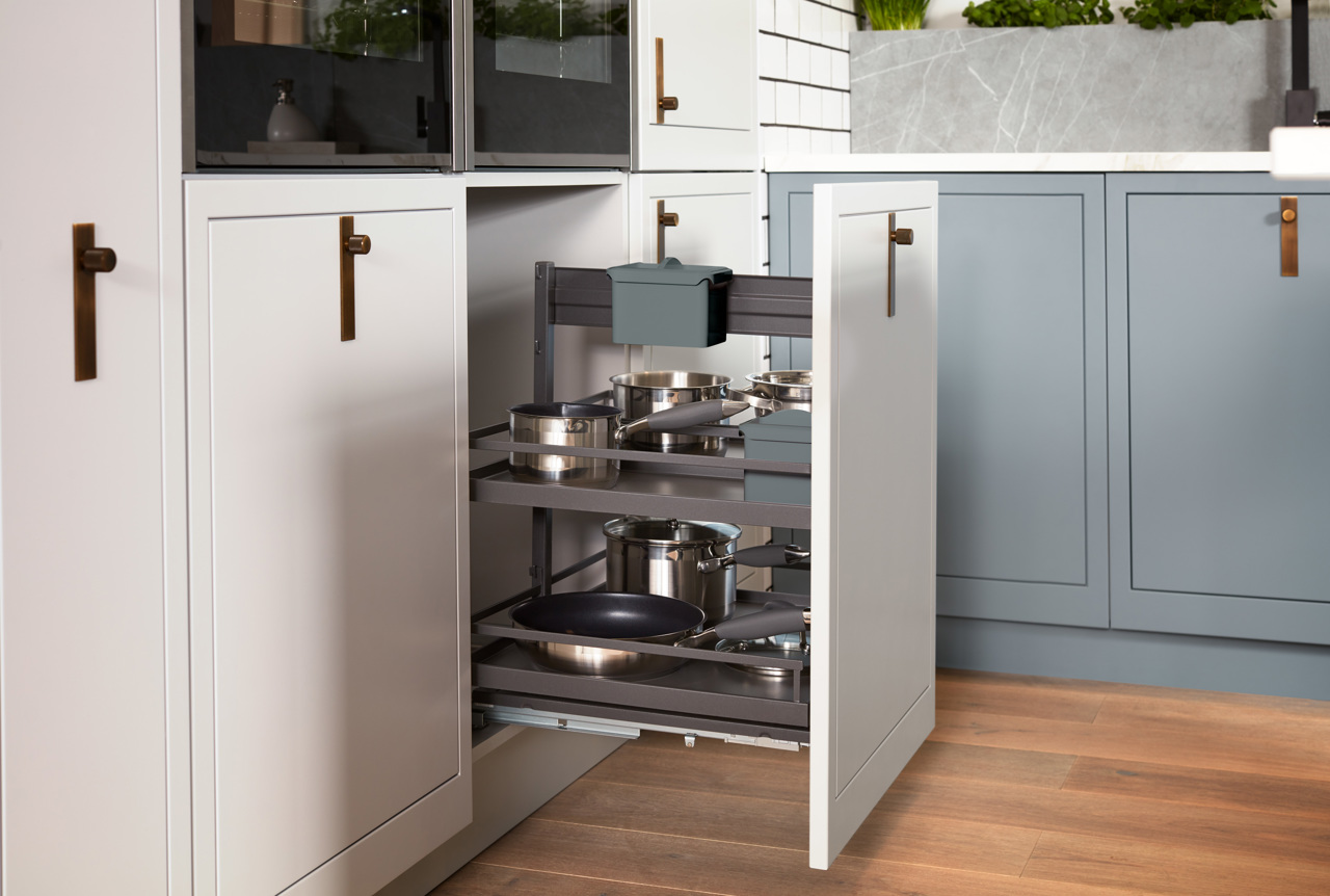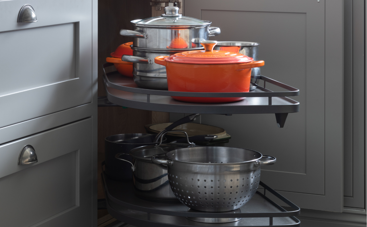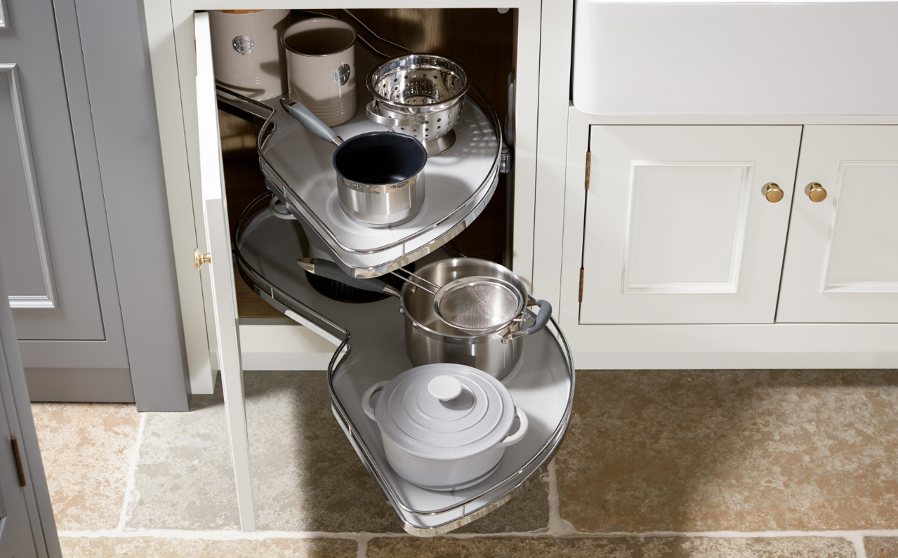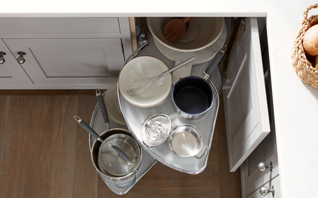 Are you guilty of having pots and pans that you haven’t seen for a while as they’re lost to the depths of an awkward corner cupboard? Our ingenious corner shelves glide the contents out to you, bringing everything in easy reach and fully maximising your kitchen's storage potential.