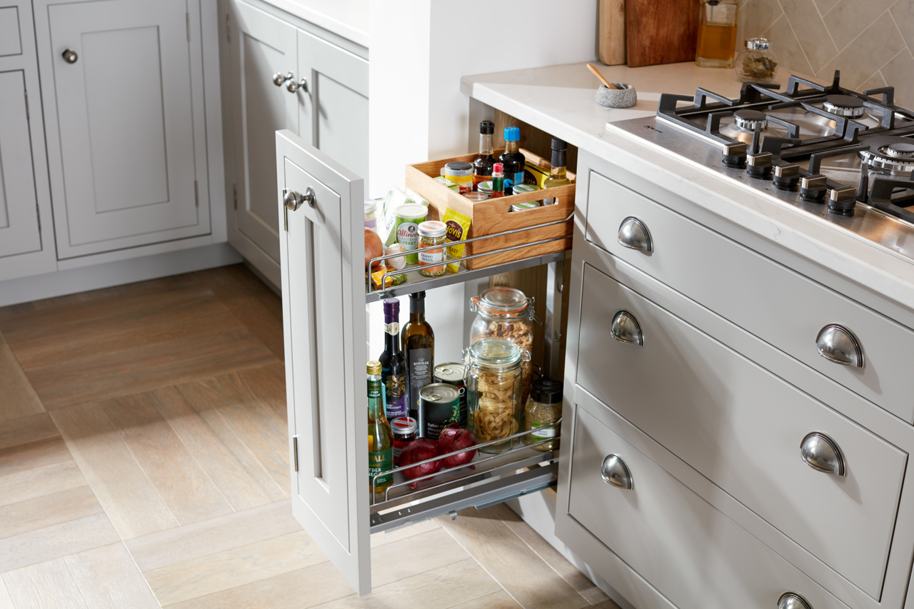 Kitchen living is always most enjoyable when your essentials are close at hand. Whether it's oils and spices by the hob, or roasting dishes under your oven, our base pull-outs ensure that your everything is always neat, tidy and where you need it most. Available in a range of widths and sizes, there's a base pull-out for every space and storage requirement.