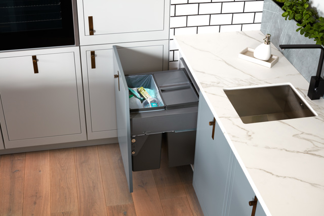 Every kitchen needs to dispose of waste and store recycling. So we believe it’s important that your kitchen can do so without compromising on style. Seamlessly integrated into your kitchen cabinet, our multi-compartment pull-out bins help to segregate and store waste and recycling neatly out of sight. They can also be used for laundry, as the perfect accompaniment to any utility room.