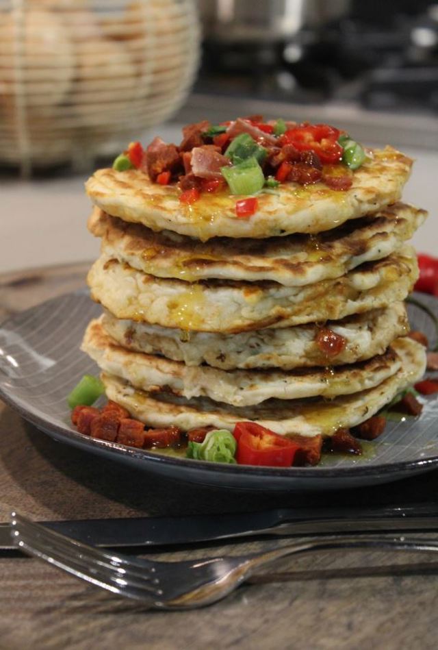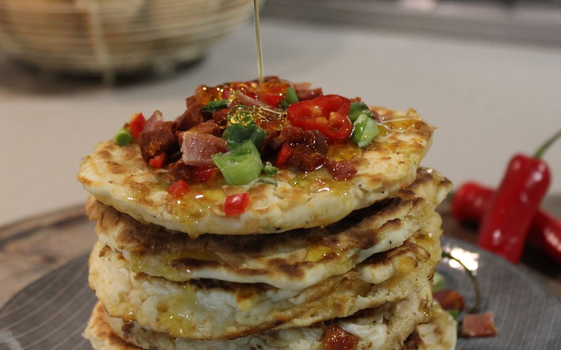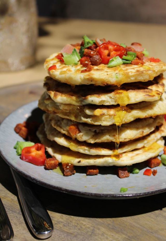 Bring some heat to your Pancake Day brunch with our Chorizo, Cheese and Spring Onion Pancakes, topped with Chilli Butter, Bacon and Golden Syrup (trust us, it works).
