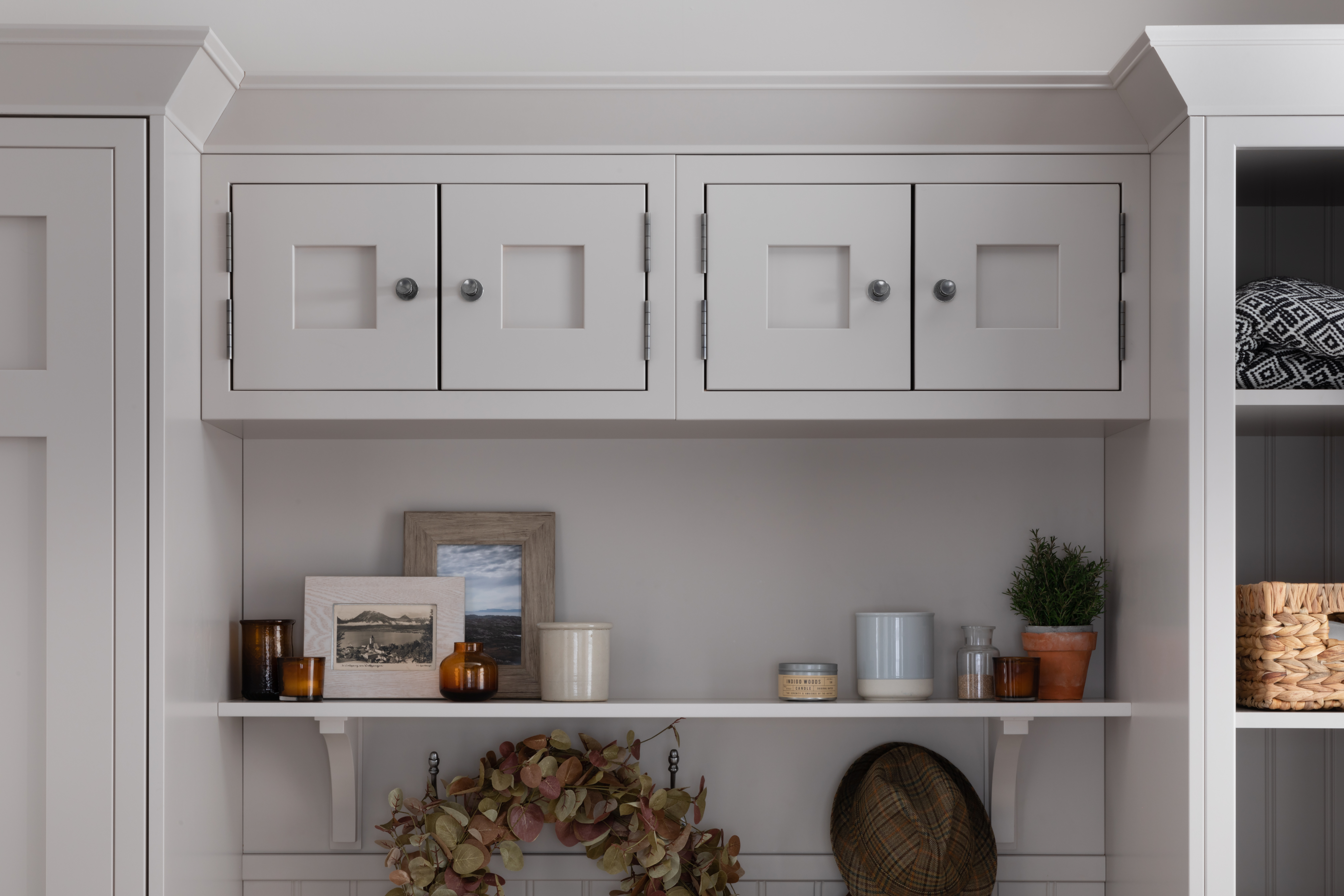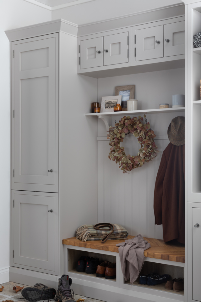 Overhead boot room cupboards are ideal for hiding away any items you don't want on display, such as seasonal attire or the family picnic blanket, helping you to minimise clutter.