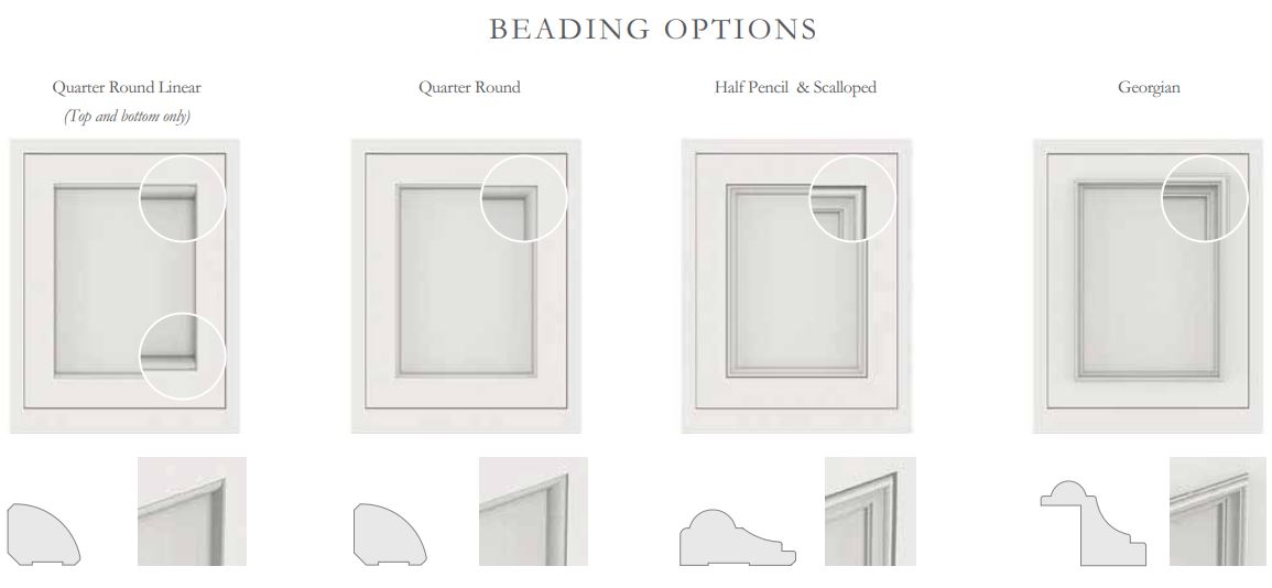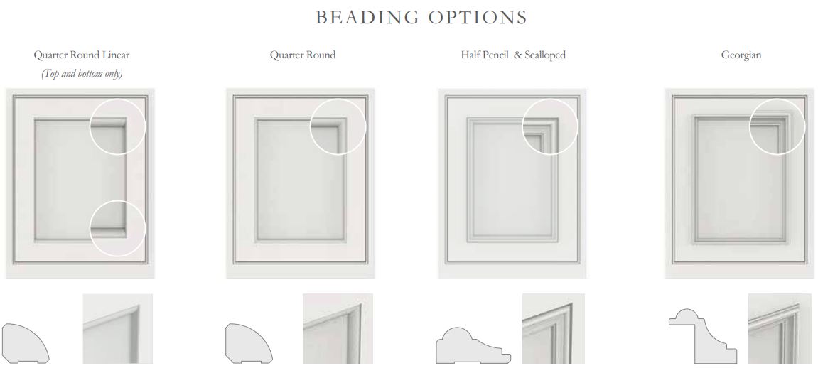 Quarter Round Linear, Quarter Round, Half Pencil & Scalloped and Georgian are all beading options available in the Shaker door design to bring an extra intricate detail to your kitchen.
