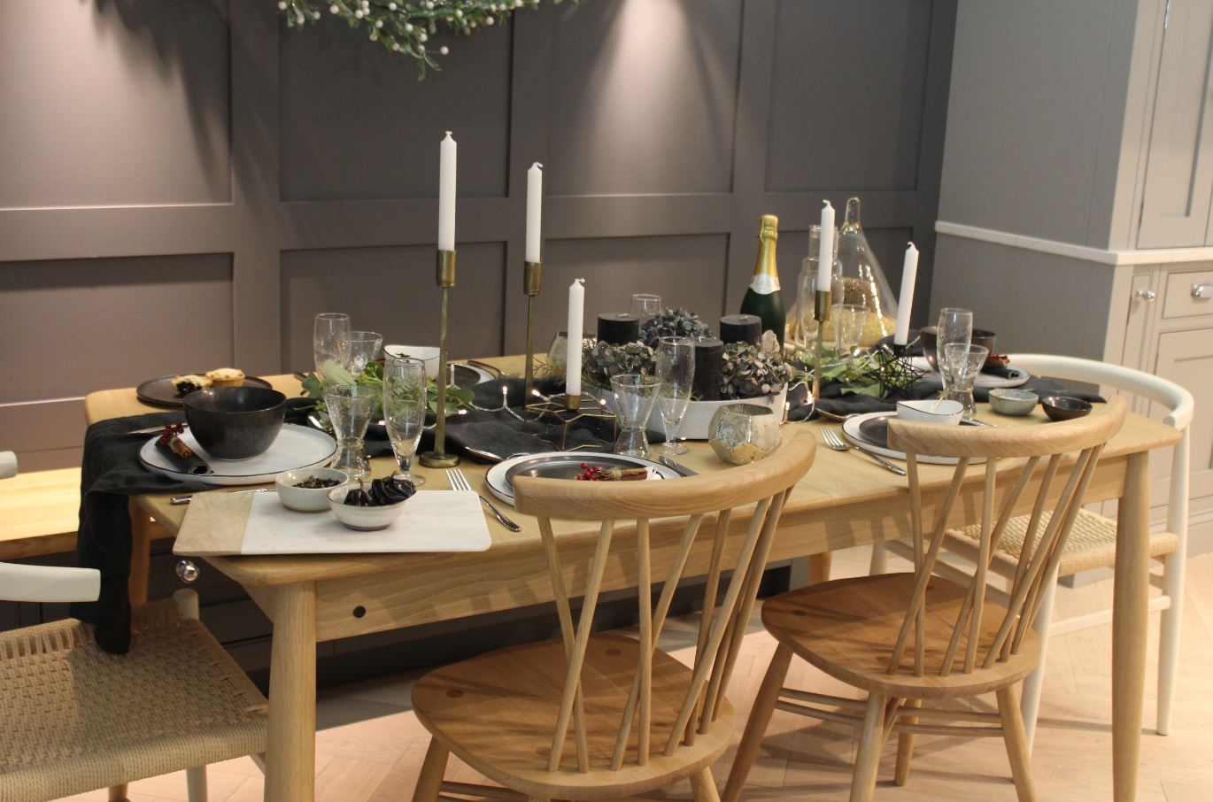 “We’re forgetting about the traditional festive colours and going bold – navy blue, scarlet red, autumn maple, bright port – mixed with shiny finishes such as brass and mirrored surfaces. I’ve incorporated these dark tones and metal elements in to the design of the Ovolo dining table to create a bold Christmas look.”