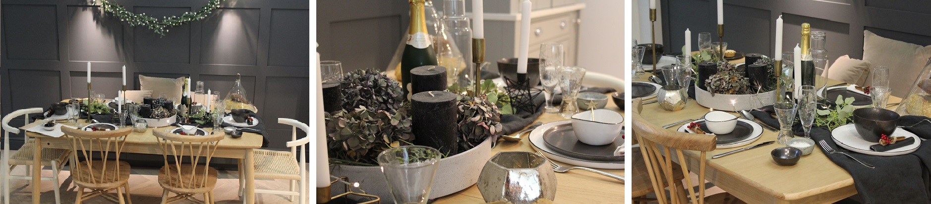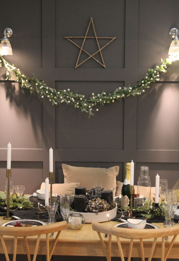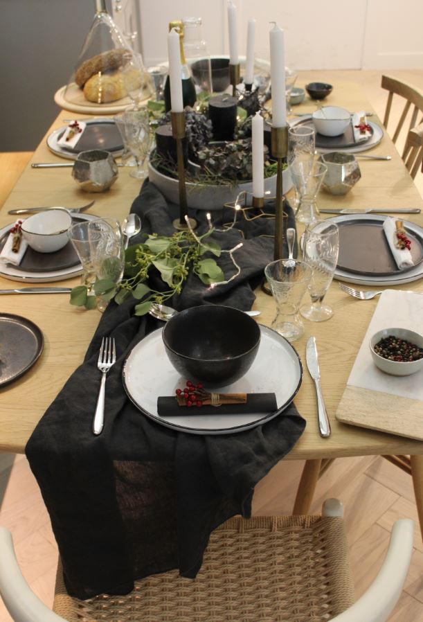 “I’ll have simple Danish tableware (like our Broste Copenhagen range – in this shoot we’ve styled up the Salt and Sand ranges), plenty of beautiful foliage (faux of course) to bring the outside in, and lots of candle holders and votives for the perfect ambient lighting as the day draws in.