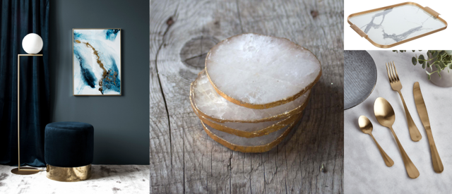 Quartz and gold coasters - £48 for 4 – Graham & Green - https://www.grahamandgreen.co.uk/set-of-four-quartz-and-gold-coasters